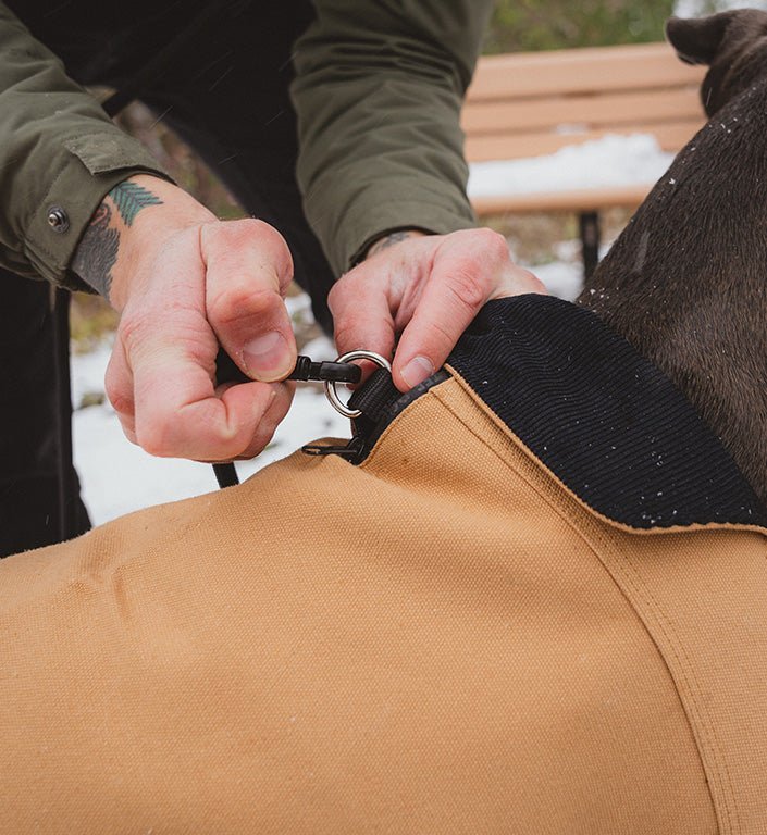 Lightweight, durable and comfortable – the Pink Coat for dogs is made from cotton duck fabric with a mesh padding inside and soft corduroy around the neck. This dog coat is adjustable and has Velcro straps that make putting on and taking off the coat quick and easy. The coat also has a zipper on top to easily access a harness d-ring below.